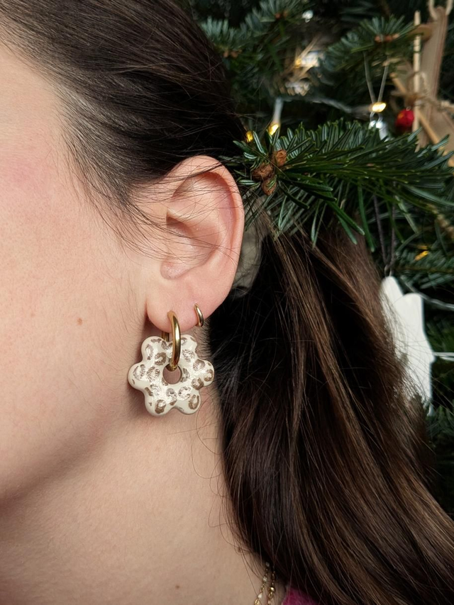 Apportez une touche de poésie à vos tenues avec ces boucles d’oreilles, sublimées par d'adorables fleurs couleur crème façonnées à la main en grès blanc.