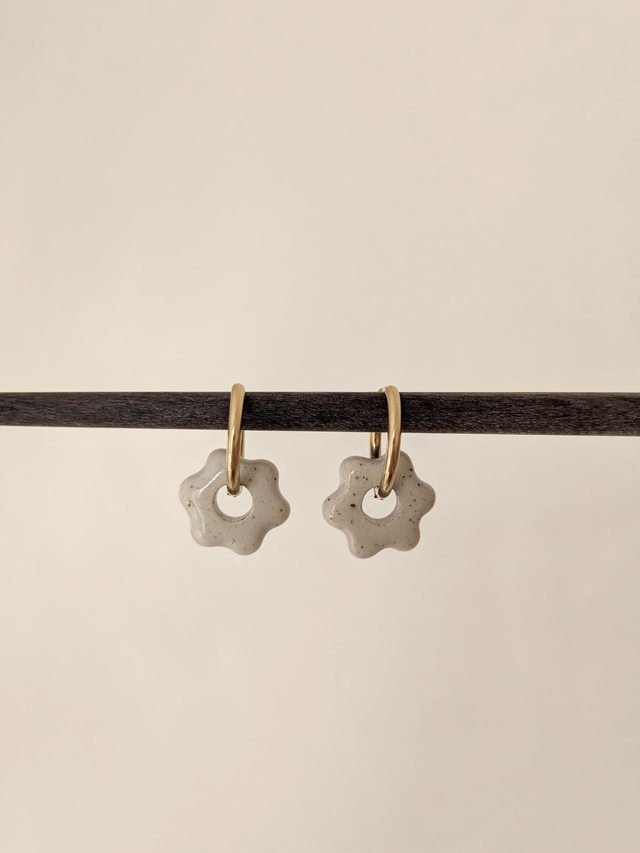 Apportez une touche de poésie à vos tenues avec ces boucles d’oreilles, sublimées par d'adorables fleurs couleur crème façonnées à la main en grès blanc.
